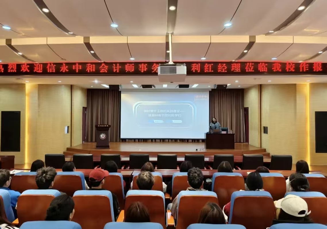 10月29日,河南乐算会计服务公司焦晶静经理为学生们解读了行业趋势与职业路径,王福丽老师则聚焦公司成立、报税等实操软件应用。此次报告会帮助学生明晰了财税行业现状与自身未来发展方向。