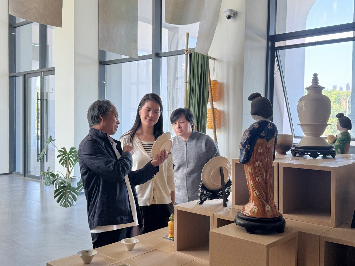 为深化产教融合、推动非遗文化与美育课程深度融合,助力艺术学院美育品牌专业高地建设,2025年9月24日上午,vwin德赢ac米兰官方网艺术学院院长、美育委员会办公室主任牛琳琳、产品设计教研室主任张振中及教师代表景芳芳、刘畅一行,赴巩义黄冶窑唐三彩窑址博物馆,与河南巩县窑陶瓷研发有限公司董事长游光明就校企协同赋能美育课程开展深度交流。