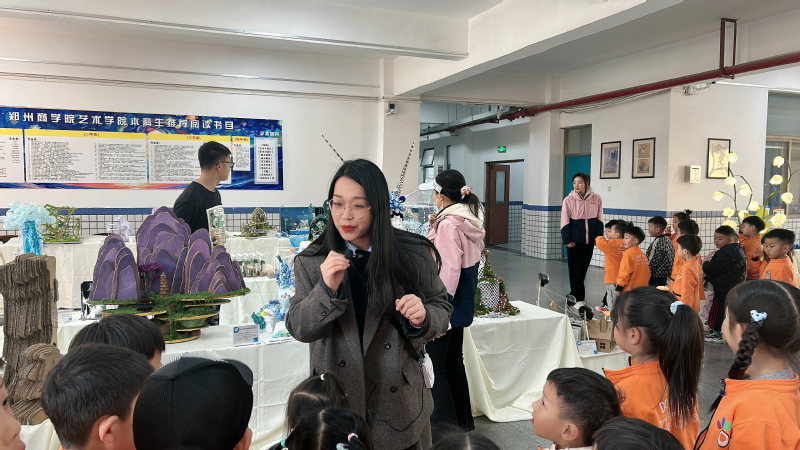 艺术学院周明珠老师化身“艺术导游”,用生动活泼、通俗易懂的语言,为小朋友们讲解立体构成的知识和作品。
