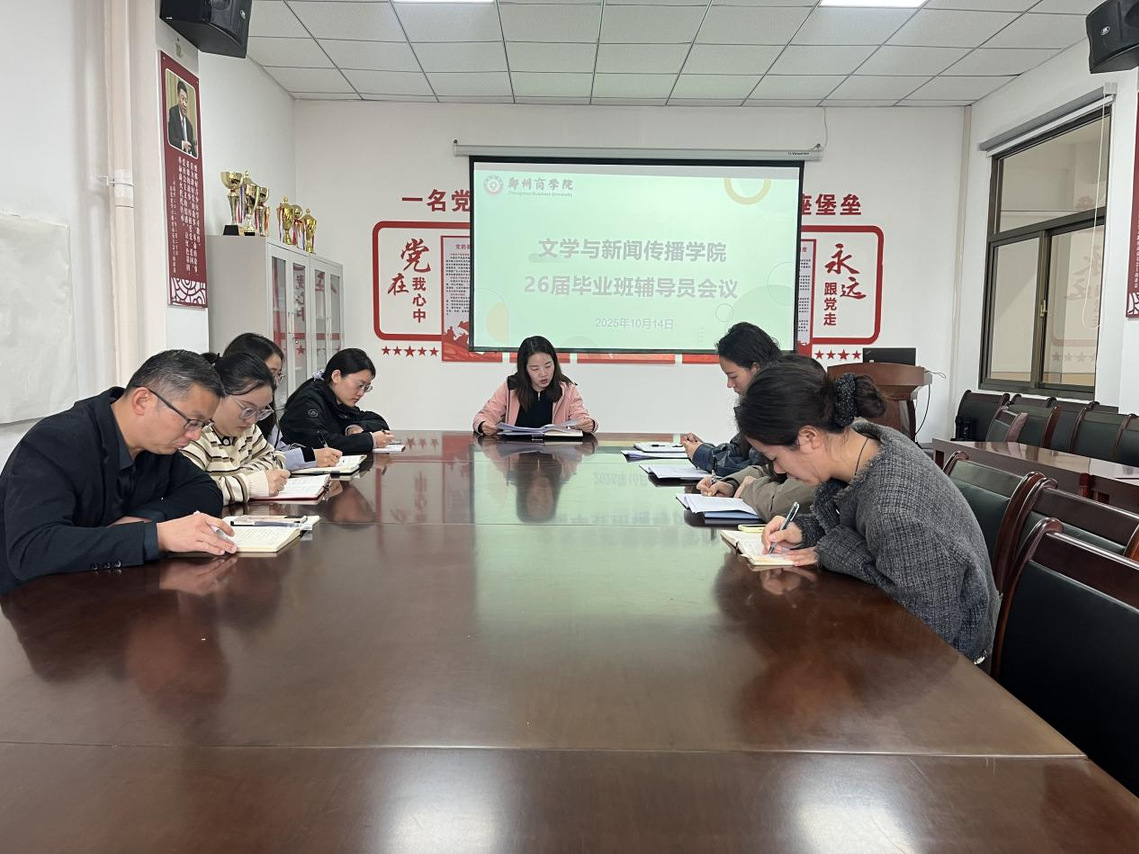 为进一步贯彻落实学校就业创业工作推进会精神,扎实有效推进2026届毕业生实习实训管理工作,2025年10月14日,学院组织召开毕业班辅导员培训会议。文传学院党委书记贾蓓主持会议并就实习实训指导工作进行专项部署与深入指导。