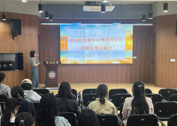 为科学全面地了解德赢官网老生心理健康状况,切实提升开展心理健康教育与危机预警防控工作的精准性、有效性,心理健康教育中心于4月19日下午在众创空间三楼路演厅组织开展2024年度老生心理普查反馈交流会,此次会议由心理健康教育中心黄静静老师主讲,各学院老生辅导员参加。