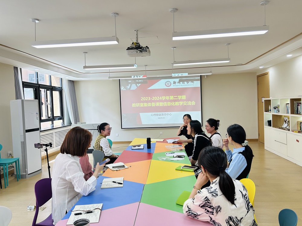为深化教师间的教学互动,推动信息技术在心理健康教育领域的应用,全面提升课程教学品质与成效,心理健康教育中心于2024年4月26日下午在团体辅导室组织召开信息化教学交流暨期中教学检查部署会。教研室全体专兼职教师通过线上线下相结合的方式参加了此次会议。
