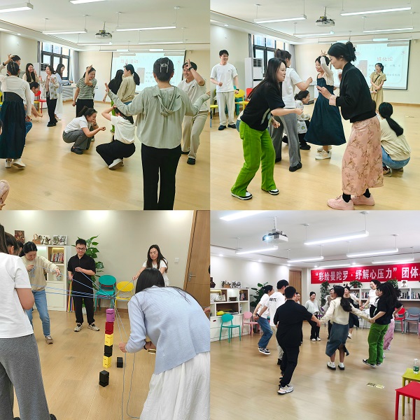 此次活动由心理健康教育教研室张云宵老师主持,张老师首先介绍了团体沙龙的主题,并通过“大风吹”、“进化论”两个游戏,迅速点燃了现场氛围,教师们在活泼的气氛中打破了初始的拘谨。活动中教师们相互支持、彼此鼓励、积极分享,在“合力搭塔”、“达芬奇密码”、 “反口令”等游戏中展现出高度的合作精神和默契度,共同面对挑战、解决问题,充分体现了团队的魅力和力量。